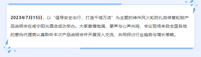 【咸寧站】“倡導(dǎo)安全出行,打造千城萬店”神州風(fēng)火輪智能防扎自修復(fù)輪胎產(chǎn)品說明會